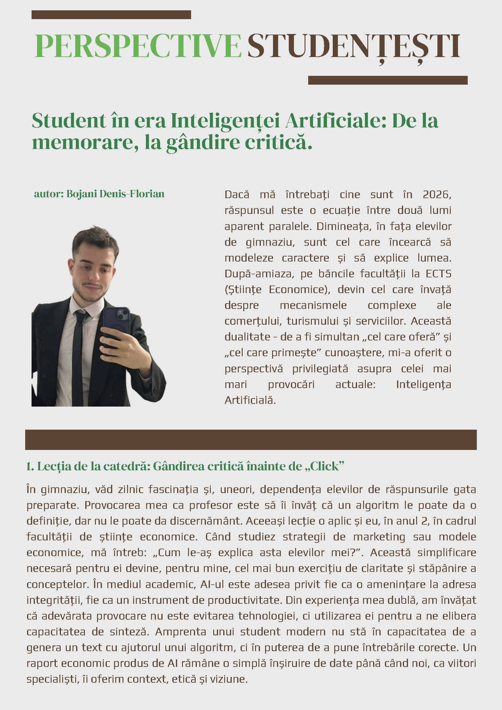 21. STUDENT ÎN ERA INTELIGENȚEI ARTIFICIALE: DE LA MEMORARE, LA GÂNDIRE CRITICĂ - Bojani Denis Florian